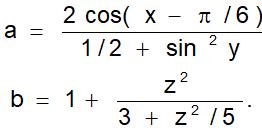 x, y va z ning berilgan haqiqiy qiymatlari uchun quyidagi ifodalarning qiymatini toping (pi = 3.1415).